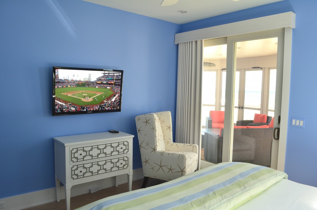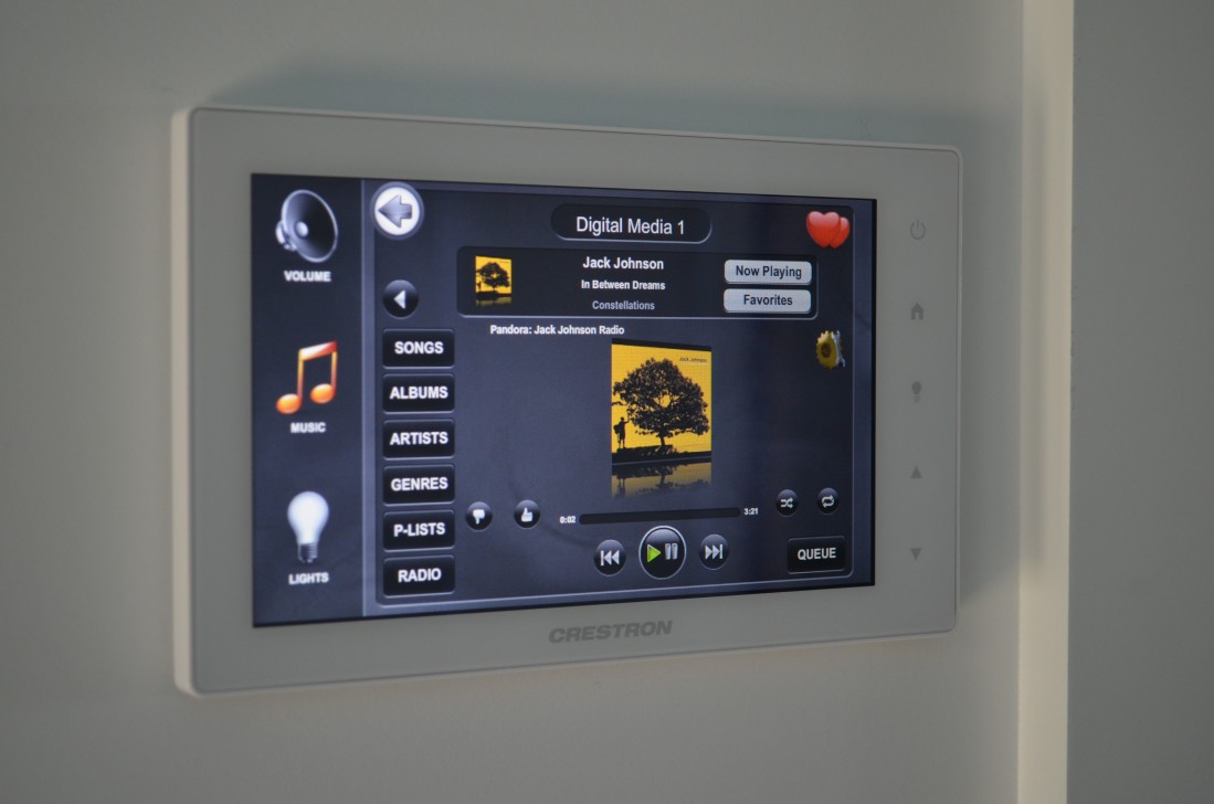 This summer home paradise was a second property for a customer who lives in the Philadelphia area. Using the unrestricted Crestron design software, Hoishik was able to integrate HVAC, lights, and security so the customer could manage their property while they were not there. The Crestron system has customizations magic programs such as “Coming Home.” With the press of one button the house will automatically make adjustments to give the customer a warm welcome back to paradise. On the other hand, when the customer leaves the “Away” program will make sure the house is properly turned off. The doors will lock, security will arm, all of the A/V system will shut off, HVAC will run an away program, and the lights will run a specific program to make is seem as if someone is in the home. The customer will never come home to a cold house or drive away wondering if they closed the garage or locked the doors. However, if they ever just wanted to check, from any smart phone, tablet or computer, they can view the status of the alarm, HVAC, lights, and door locks.