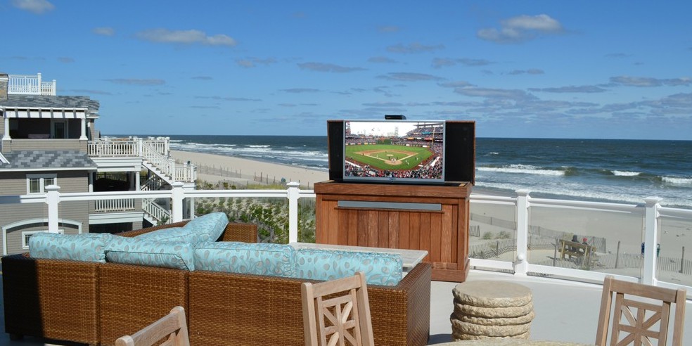 Existing customers of Hoishik purchased a piece of property on Long Beach Island, NJ where they planned to build the ultimate shore home of their dreams. Throughout the design meetings with the architect, Hoishik was an integral part of the process, working to incorporate all of the customer’s desires. The plans included whole house audio, video distribution, security, HVAC, and the ultimate outdoor deck tv. The customers wanted to have a traditional beach house feel while still enjoying a modern technological smart home.