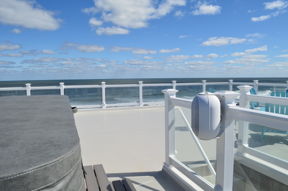 When you are relaxing on your deck at the beach you want to be listening to your favorite music at all times without ever having to leave the sun bed. Hoishik created a whole house audio system that includes Terra Speakers that can handle the elements of being outside year round. This ultimate media system includes your private music collection, along with Pandora, Spotify, local radio, itunes radio, and many more stations that can be changed at your fingertips on any smart phone, remote control, tablet, or touch panel.