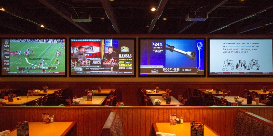 Game on! 16 flat screens throughout the restaurat ensures everyone's game is always on!
